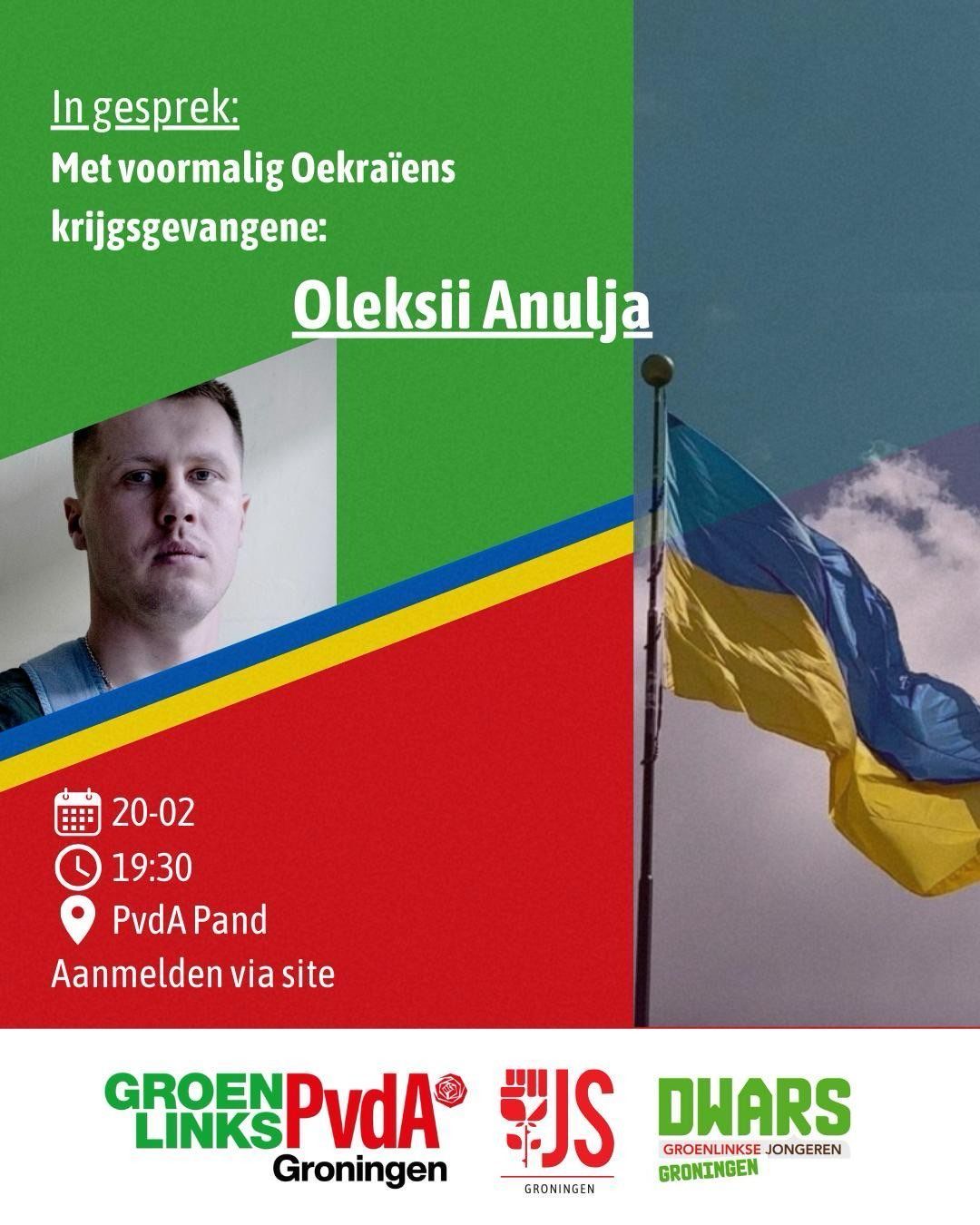 Vooraankondiging: Op 20 februari organiseren PvdA-GroenLinks, DWARS en JS een gesprek met Oleksii Anulja, mensenrechtenactivist en voormalig krijgsgevangene.