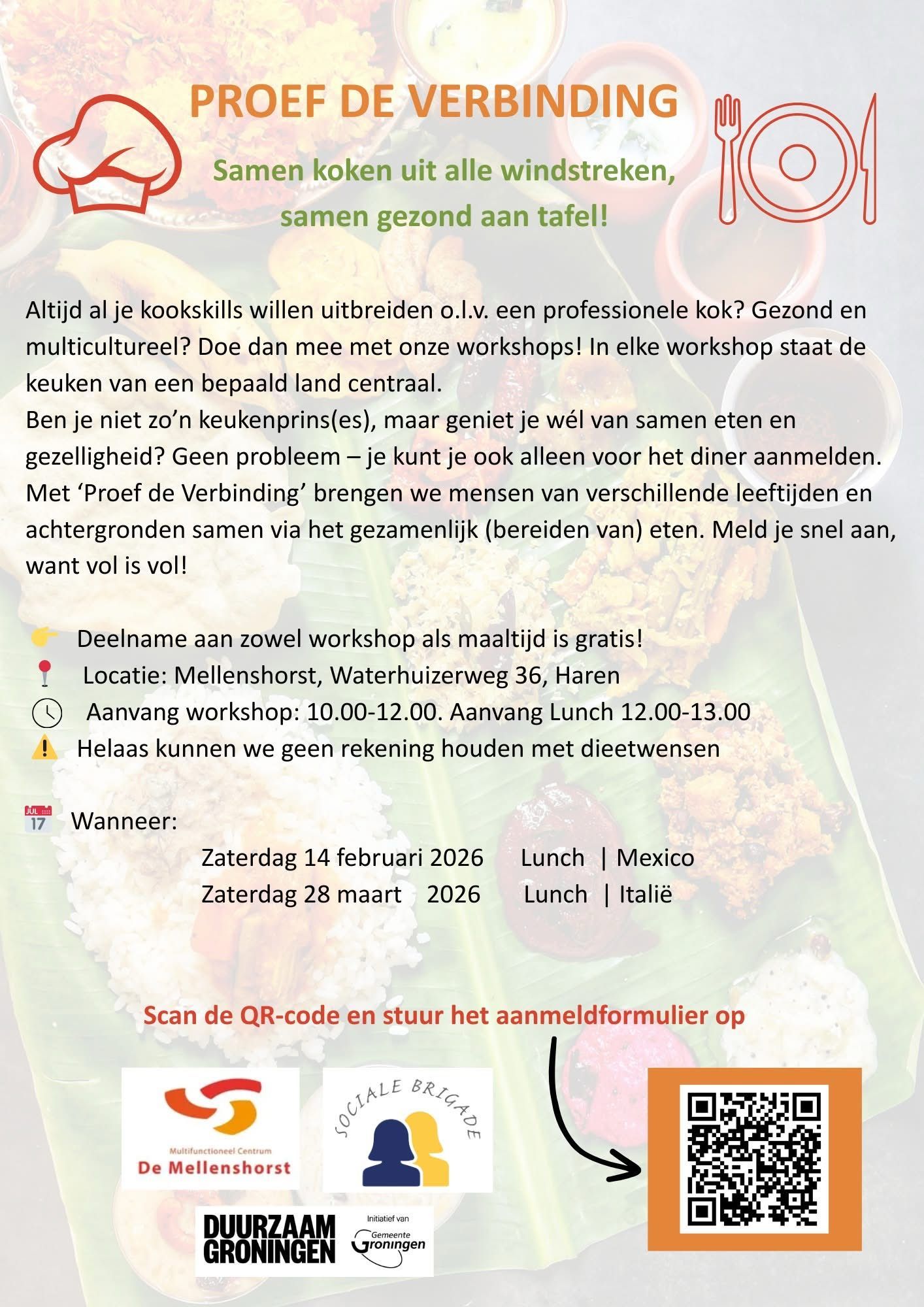 Deelname aan zowel workshop als maaltijd is gratis! Locatie: Mellenshorst, Waterhuizerweg 36, Haren