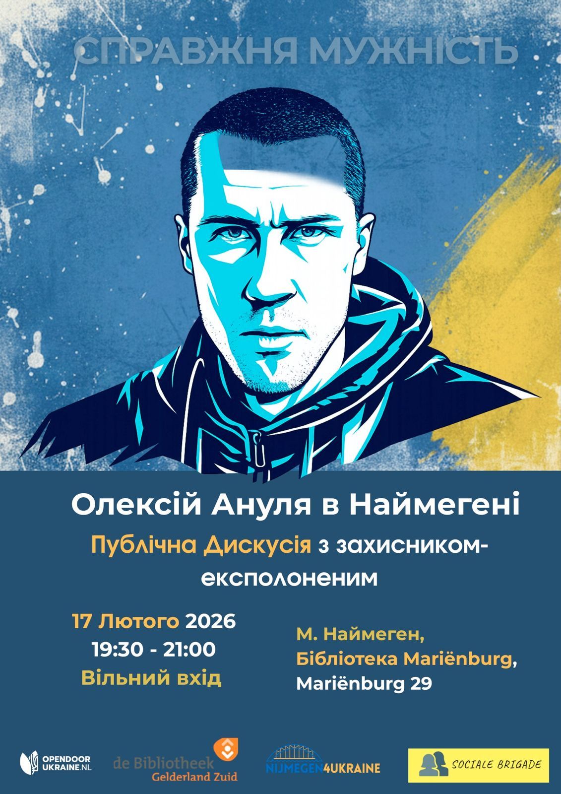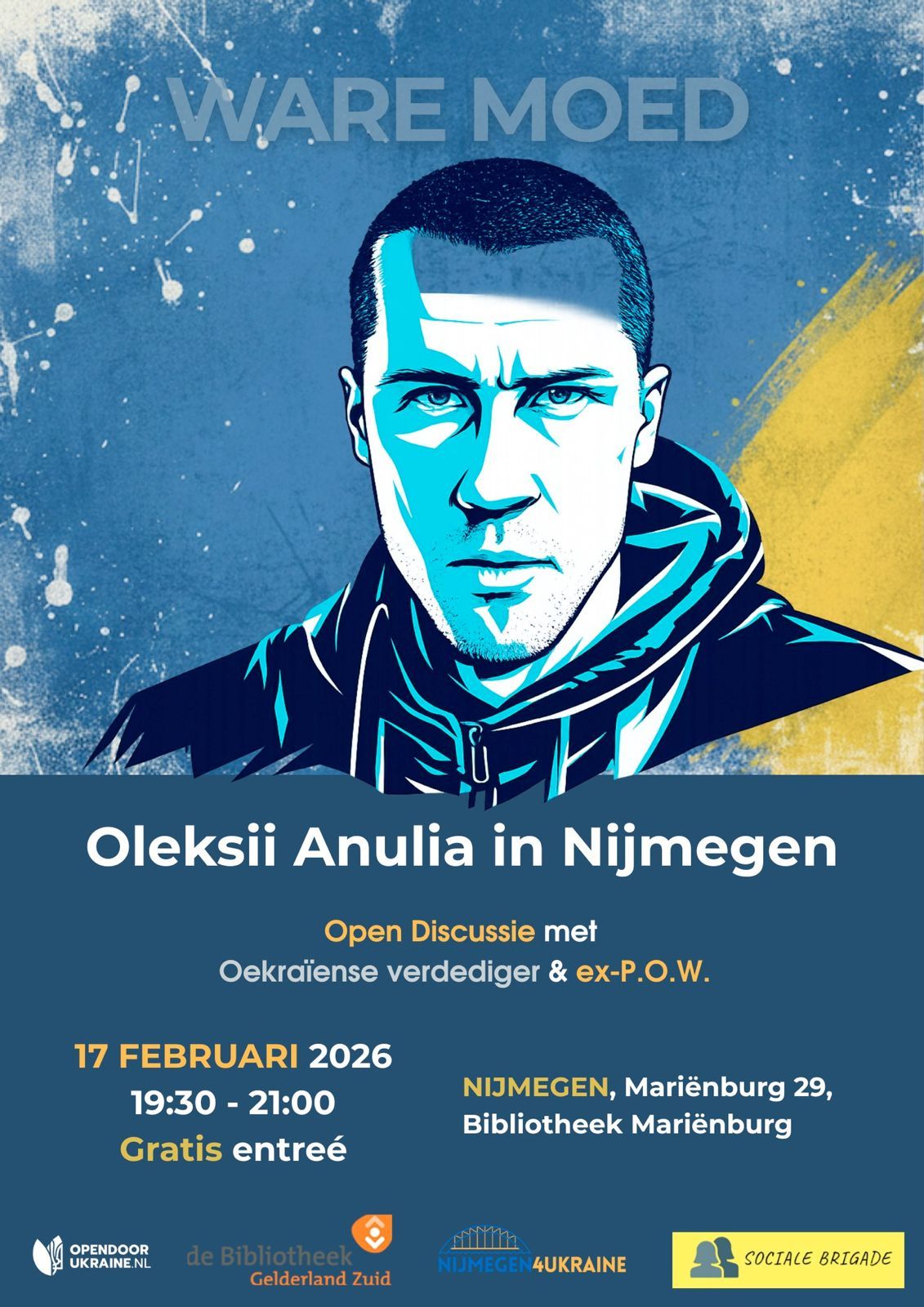 True Courage: Meeting and discussion with Oleksiy Anulia, a Ukrainian defender and former prisoner of war. Oleksii Anulia survived 11 months of torture in Russia. After 33 operations in specialized foreign hospitals to recover, he shares his experience in Nijmegen.