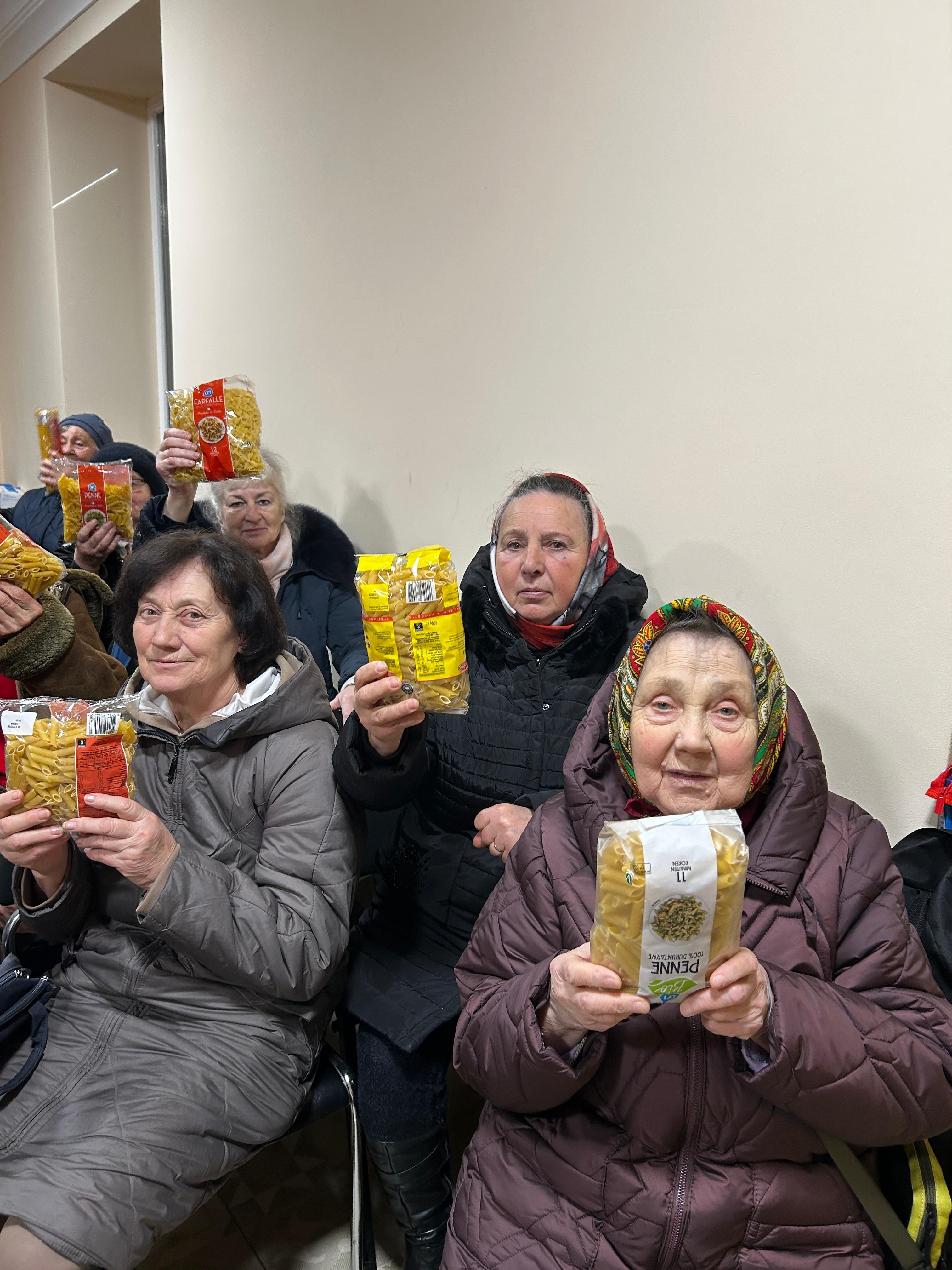 Tijdens de humanitaire reis die Willemijn Kemp in januari maakte namens de Sociale Brigade is ook de opbrengst van de supermarktacties van afgelopen najaar afgeleverd bij ouderen en hulpbehoevenden in Cherson.